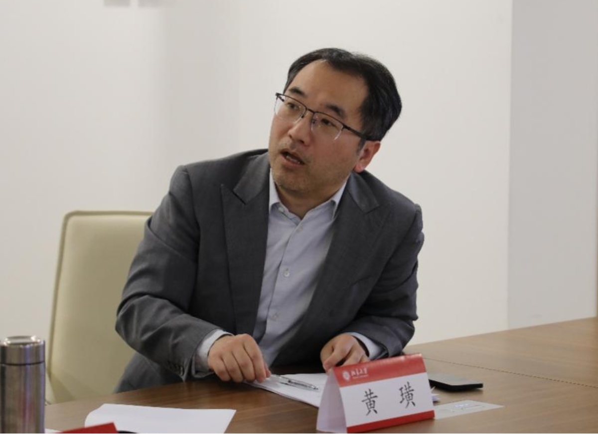 北京大学教务部副部长黄璜教授首先发表致辞。致辞中,黄璜教授对莅临会议的专家教授及项目组成员表达了诚挚的感谢,预祝项目开题圆满成功、项目取得丰硕成果,并表示北京大学教务部将继续全力支持基地建设,全方位保障教材研究工作的深入开展。