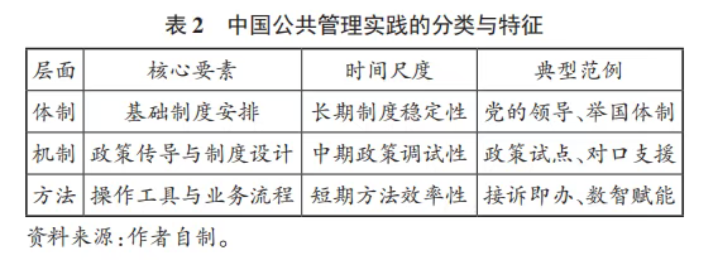 需要说明的是,“体制—机制—方法”三层结构并非彼此割裂的静态存在,而是在具体实践中相互耦合、彼此贯通,构成中国公共管理的动态循环。体制层作为制度势能的源头,通过机制层转化为具体治理行为;机制层通过政策设计与制度创新将体制目标具象化,并在方法层中以服务流程、治理工具和管理手段的形式实现具体落实。治理实践中的诸多案例表明,从体制到机制、从机制到方法的纵向传导逻辑十分普遍,例如“顶层设计—政策包—项目制”的传导链条在区域发展治理中屡见不鲜;而“方法—机制—体制”的反向反馈闭环也显现出鲜明本土治理特征,譬如基层治理中“接诉即办”工作推动了办事流程精简、制度优化甚至治理理念创新,诠释了方法层对机制和体制层面的再塑能力。