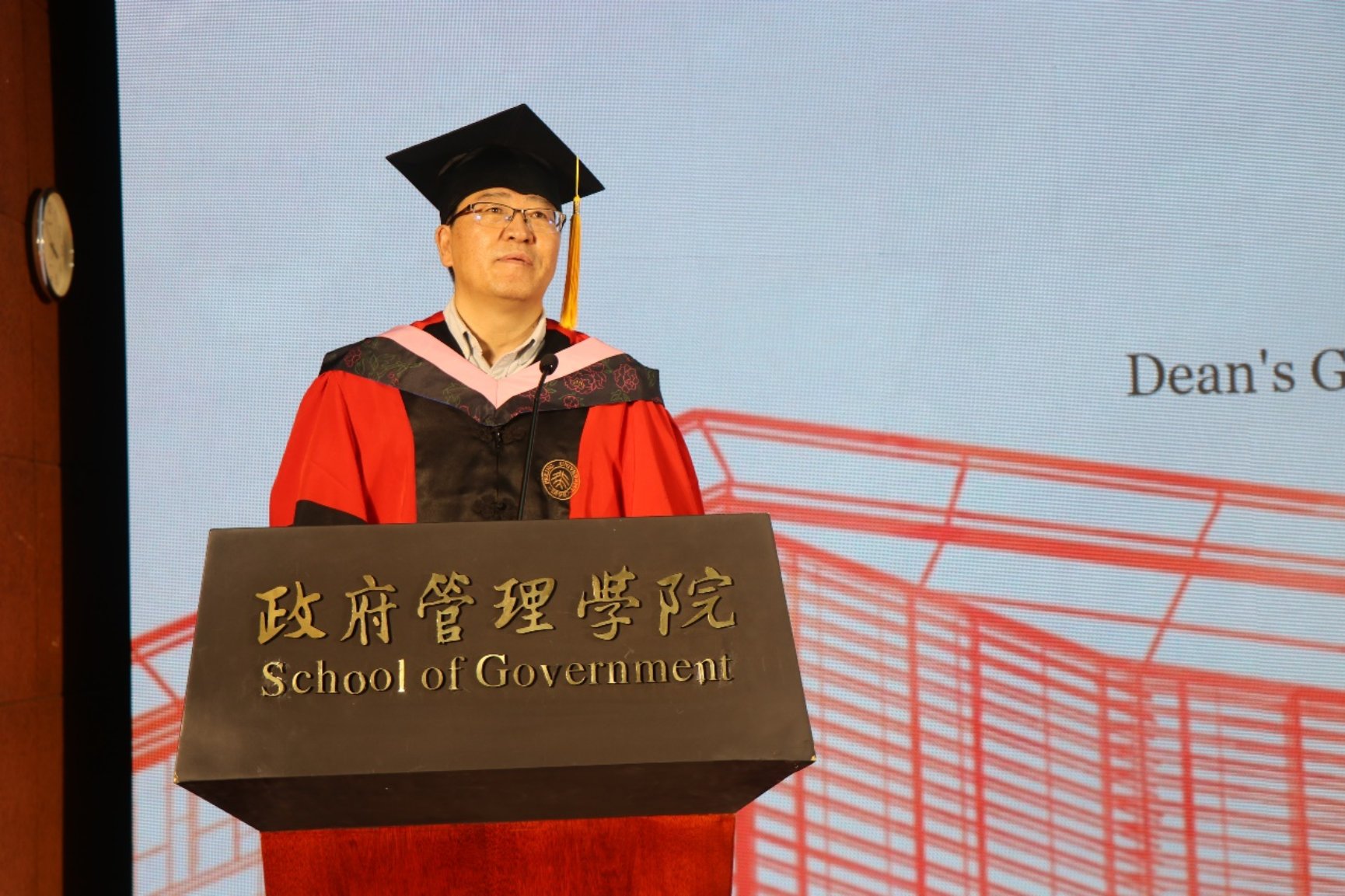 学院院长燕继荣作题为《融入时代,成就自我》的毕业致辞,对毕业生同学提出了三点期望:第一,无论何时,都要谨记,“不忘初心,牢记使命”;第二,无论何处,都要坚信,只有融入时代,才能成就自我;第三,无论经历了什么,都要坚持,改造世界观,提升判断力。他强调,同学们毕业后既要“融入环境,融入时代,融入伟大目标”,也要“约束自己,提升自己,成就优秀自己”。希望同学们“爱己爱他爱家人”,“爱党爱国爱人民”,“因热爱,得幸福”。