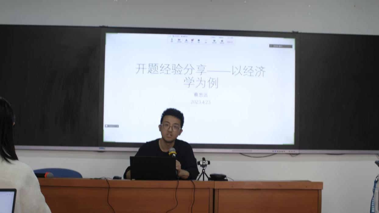 蔡思远同学从如何认识开题、如何选题、如何解题等方面展开分享。首先,他指出问题具有亟待解决和可验证两重特征,要练就用“大白话”讲清楚问题的能力。其次,他从具体、可行、创新、政策含义四个层面对如何选题进行了解析。再次,他认为可以基于文献拓展、现实理解和争议问题寻找“故事”,为故事找到合理的逻辑解释并搭建对应的理论框架和机制。最后,在选题的具体策略上,可以遵循确定方向——提炼问题——打磨问题的思路,要善于讨论、聚焦选题,避免发散式的研究,并建议从概念、变量和指标等层面判定选题的可行性和创新性。