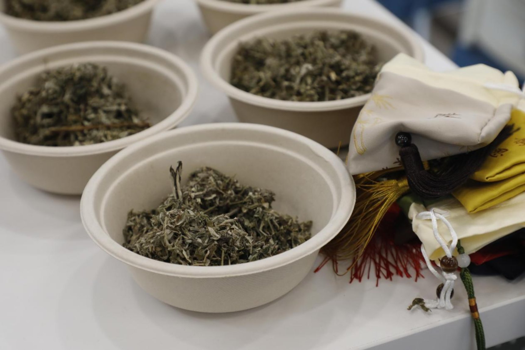 活动的最后一个环节是制作香囊,同学们根据线索将药草一一对应,并且配出自己喜欢的中草药香囊。会场里暗香浮动,沁人心脾,大家挑选草药,轻捻,慢抖,细细分装,沉浸入制作香囊的过程之中。小小香囊,承载着上千年的文化信息,通过香囊的制作,同学们进一步了解了有关中草药的传统文化知识,也深入体会香囊的文化意蕴。