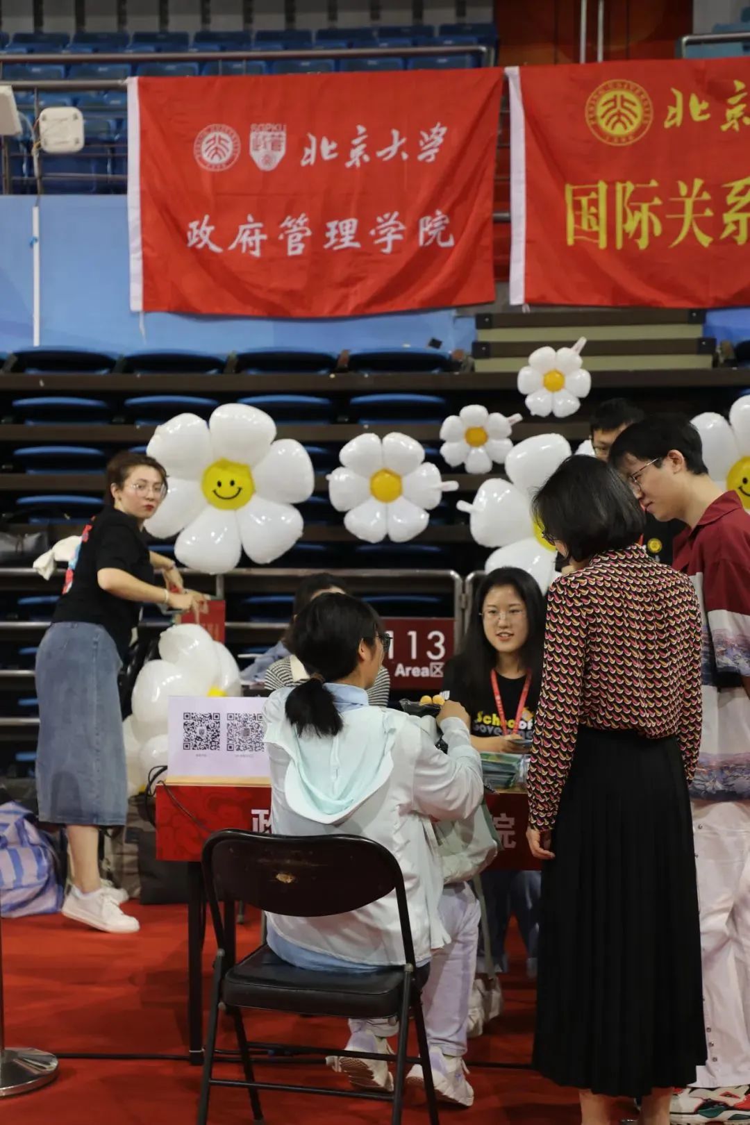 早上六点,邱德拔体育馆迎新的氛围弥漫。老师们和志愿者们,是北大最早的一缕阳光,大家早早地就来到了现场,精心布置每一个细节。欢快的音乐、鲜艳的旗帜,以及学院可爱的吉祥物,将这个特殊的日子映衬得更加璀璨夺目。