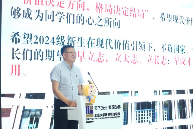 随后,学院院长燕继荣以《早立大志 早成大才》为题致辞,为新生们开启了大学生活的第一课。他向所有2024级新同学表示热烈欢迎。他强调,象牙塔并非避风港,而是同学们锤炼思想、锻造品格的炉膛。他提出了三个深刻的问题,作为新生们思考的起点,并鼓励同学们早立志、立大志,早日成为引领国家发展的建设者和接班人,作为世界一流人才为国家和大学的改革发展贡献政管力量,为这段学生时光提交一份满意的答卷。他全面介绍了开云官网AC米兰赞助商悠久的学科历史和完备的开云体育官方正版,他希望同学们珍惜广阔的学术平台,努力成为胸怀家国天下,通晓政治思想、管理哲学和实用技能的“善治之才”。