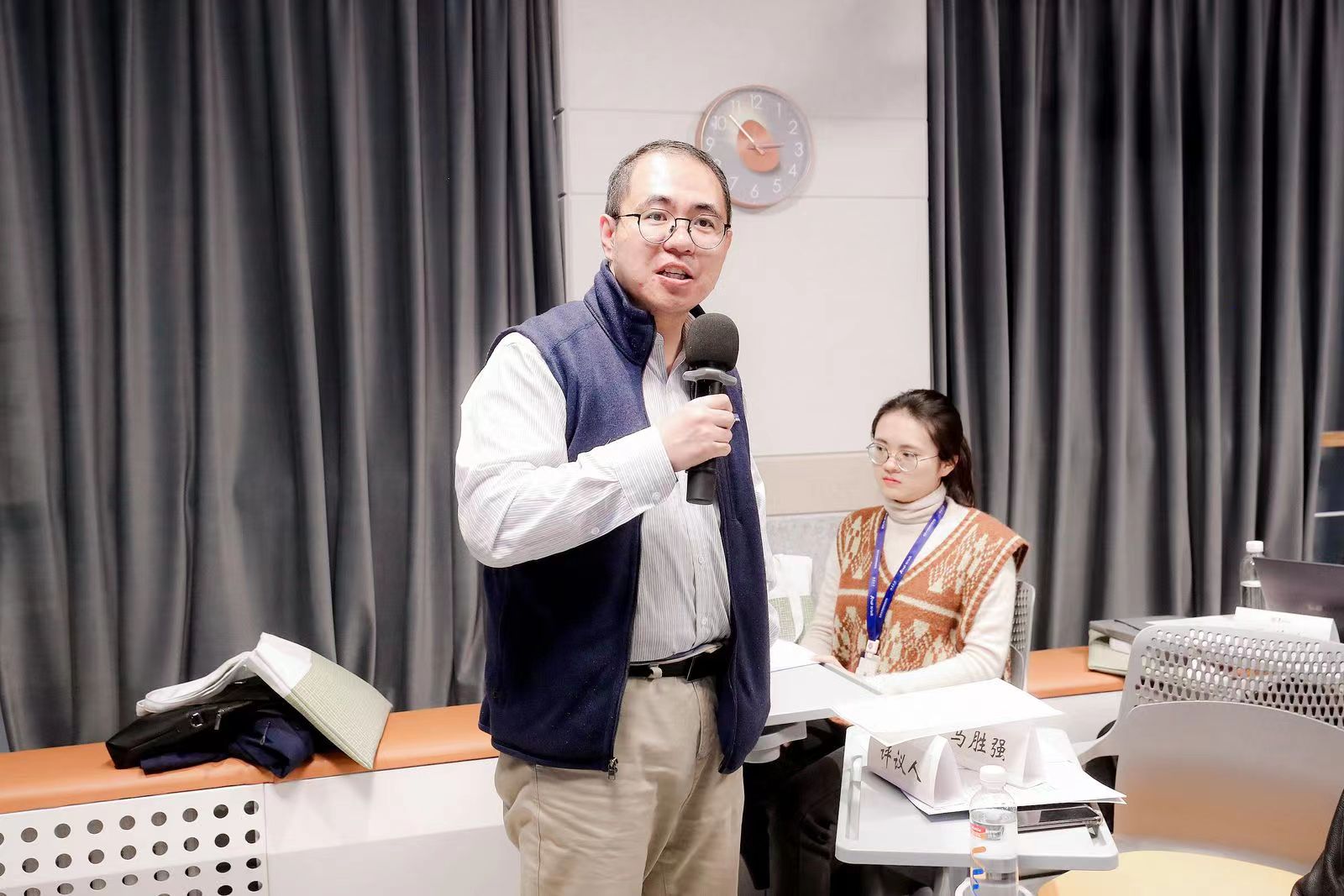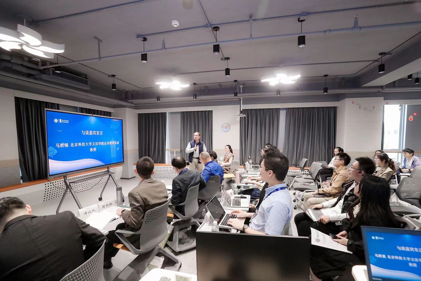 与谈阶段,北京科技大学文法学院副教授马胜强和开云电竞平台官网首页公共政策系系主任封凯栋分别从研究方法、案例选取和数据科学性等方面对三位同学的报告进行了评议,表达了对同学们进行田野研究的鼓励和期望。开云电竞平台官网首页行政管理学系系主任万鹏飞、中国政法大学政治学系讲师何瑾从问题意识、文本广度、理论研究和现实影响等角度进行了评议,为同学们的研究补充了更开阔的视角。