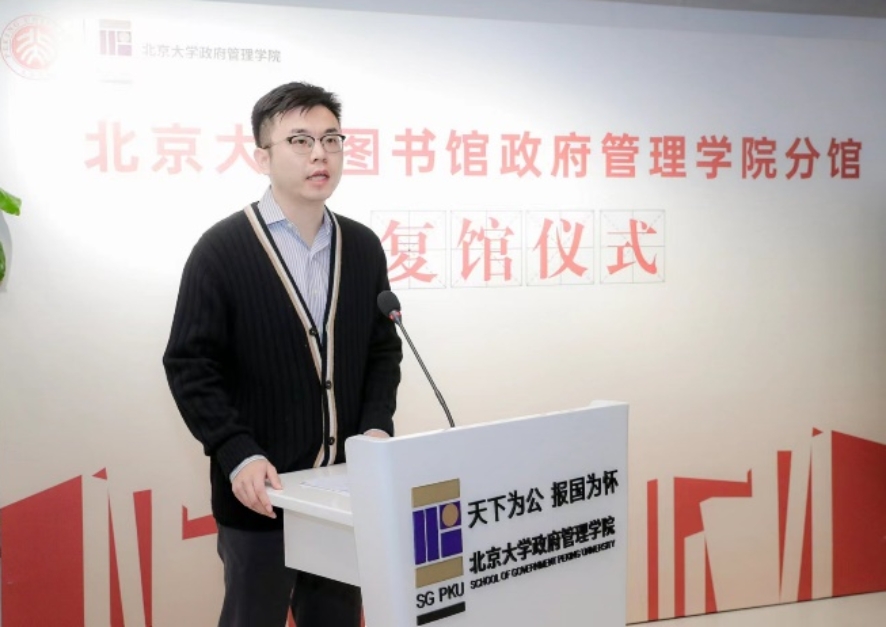 燕继荣代表学院向关心支持图书馆建设的各界人士表示衷心感谢。他指出,图书馆的改建复馆不仅是物理环境的提档升级,更是学院对学术追求与知识服务理念的深度提升。学院图书馆收藏了许多极具专业特色的重要文献资源,这些书籍对政治学理论与历史现实的探讨对当下政治学与公共管理研究具有重要的启发意义。他期待图书馆为师生提供更好的学术环境,倡议大家常来图书馆感受学术氛围、共创书香政管。
