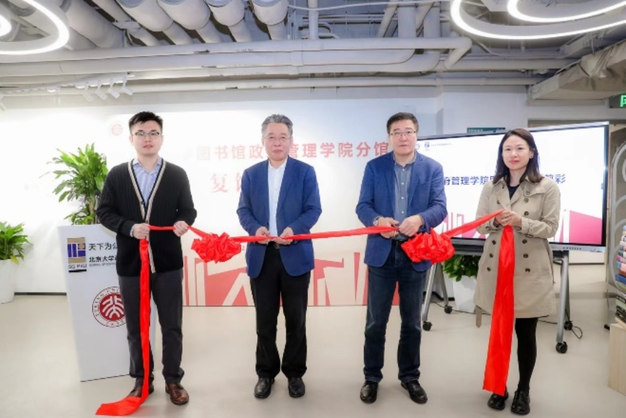 陈建龙、燕继荣、游越、于潇共同为北京大学图书馆开云官网AC米兰赞助商分馆复馆剪彩,学院图书馆正式开馆运行。