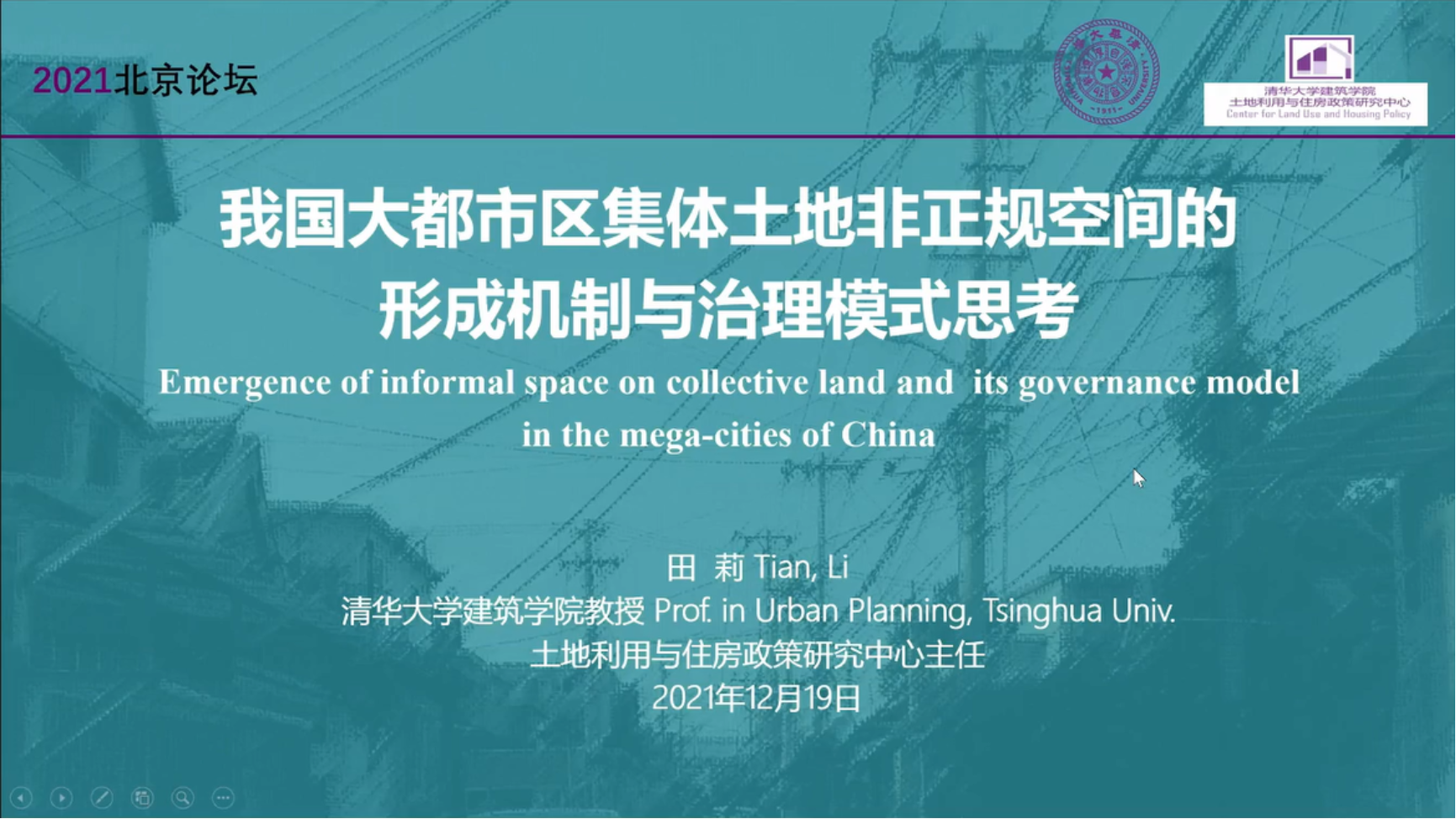 首先,清华大学建筑学院田莉教授以“我国大都市区集体土地非正规空间的形成机制与治理模式思考”为题,在回顾非正规空间的国内外研究进展与非正规空间治理的国际经验与教训的基础上,以北京为例,分析了我国大都市区集体土地非正规空间形成的历程与成因。最后,田莉教授总结了我国大城市非正规空间治理的模式,并提出了我国非正规空间改造升级的意义与路径。田莉教授认为集体土地上大量的非正规建筑的正规化是需要相当长的时间,对我们国家而言,从非正规的城市化到正规城市化的过程其实是社会财富的再分配过程,对非正规建筑的弹性治理对于建立规范化的村镇建设管理体系,对中国未来高质量城镇化进程具有重要意义。