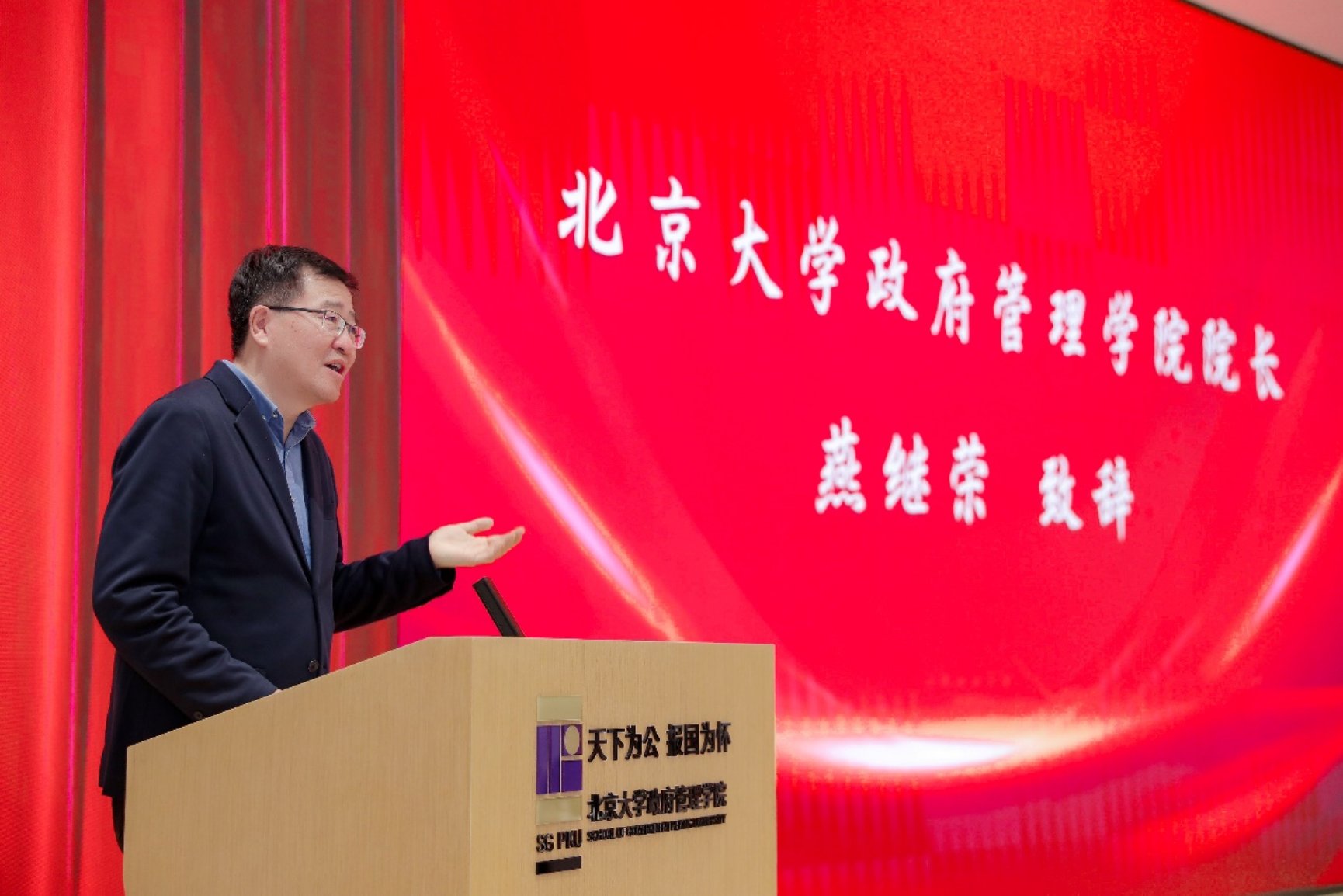 最后,燕继荣院长代表学院致辞。他表示“云书馆”是政管学院发展中的一件大事,值得纪念。学院“云书馆”的开馆,是一个足够新、足够前卫的事情,它让我们在“新”上,实现了又一次的成功引领。这是网络时代大学图书馆的发展方向,也是数字时代平台化管理的探索。三年前,学院率先设立的“数字治理”本科方向,成为北大乃至全国首个、目前也是全国唯一的数字治理本科项目。今天设立“政管云书馆”,又成为北大、也是全国首家大学数字化的专业图书馆。学院将以此为契机,进一步推动数字化建设。燕继荣院长代表学院感谢陈剑院友和他的团队能够以眼光引领未来、以情怀支持学院。他邀请在校师生以及往届院友共同加入这个平台,“众筹”共建云书馆,让读书上课不再是大学特有的场景,而是相伴终生的生活内容。随后,燕继荣院长为陈剑院友颁发了捐赠纪念证书。