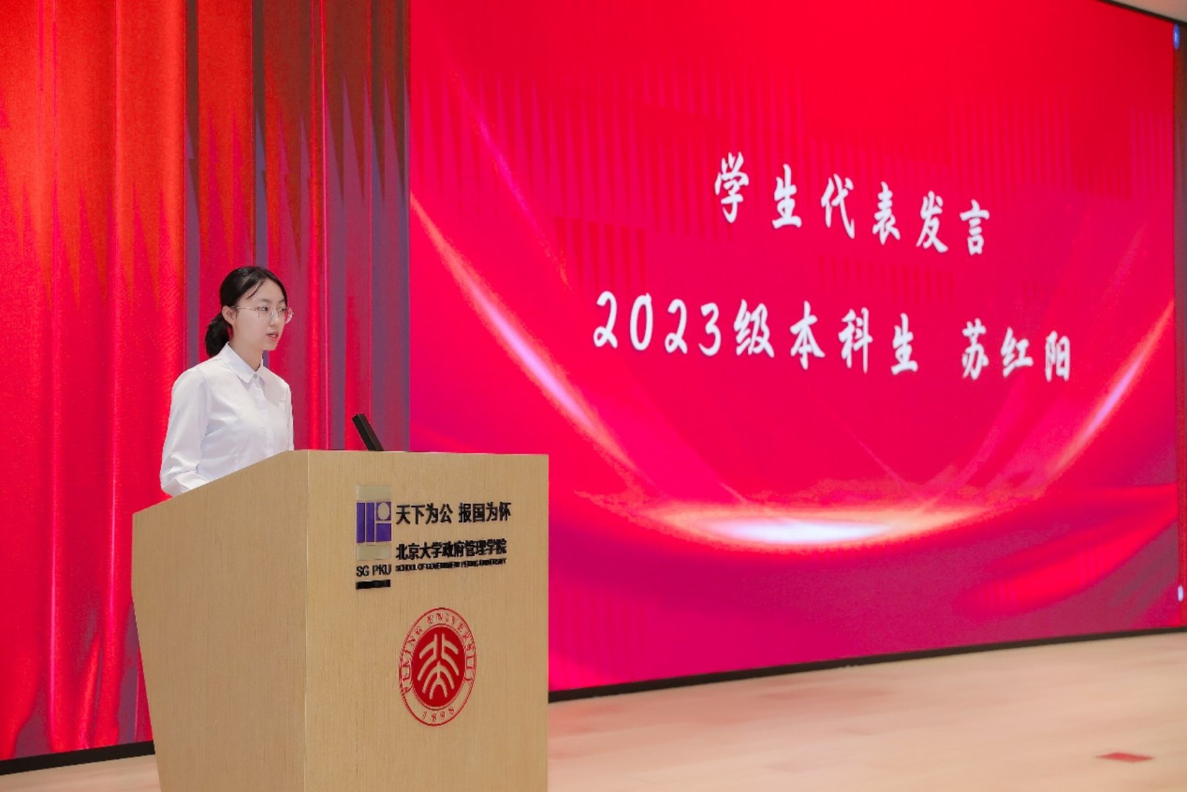 学院2023级本科生苏红阳作为在读学生代表发言。她谈到了同学们对于电子阅读日益增长的需求以及目前正版电子书籍稀缺和不易获得的现状。“政管云书馆”可以和线下图书馆完美结合,为师生院友提供线上线下双渠道的阅读通道,满足大家对于电子书籍和实体书籍的多样需求。她代表在读学生表示,一定会利用好“政管云书馆”这个平台。